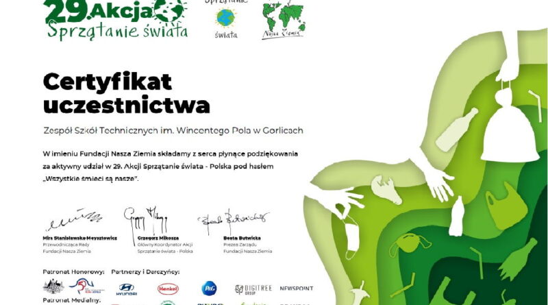 ZST w Gorlicach przyłączył się również do IV edycji ogólnopolskiej akcji #Sprzątamy dla Polski objętej honorowym patronatem Prezesa Rady Ministrów, Ministra Edukacji i Nauki oraz Generalnej Dyrekcji Lasów Państwowych.