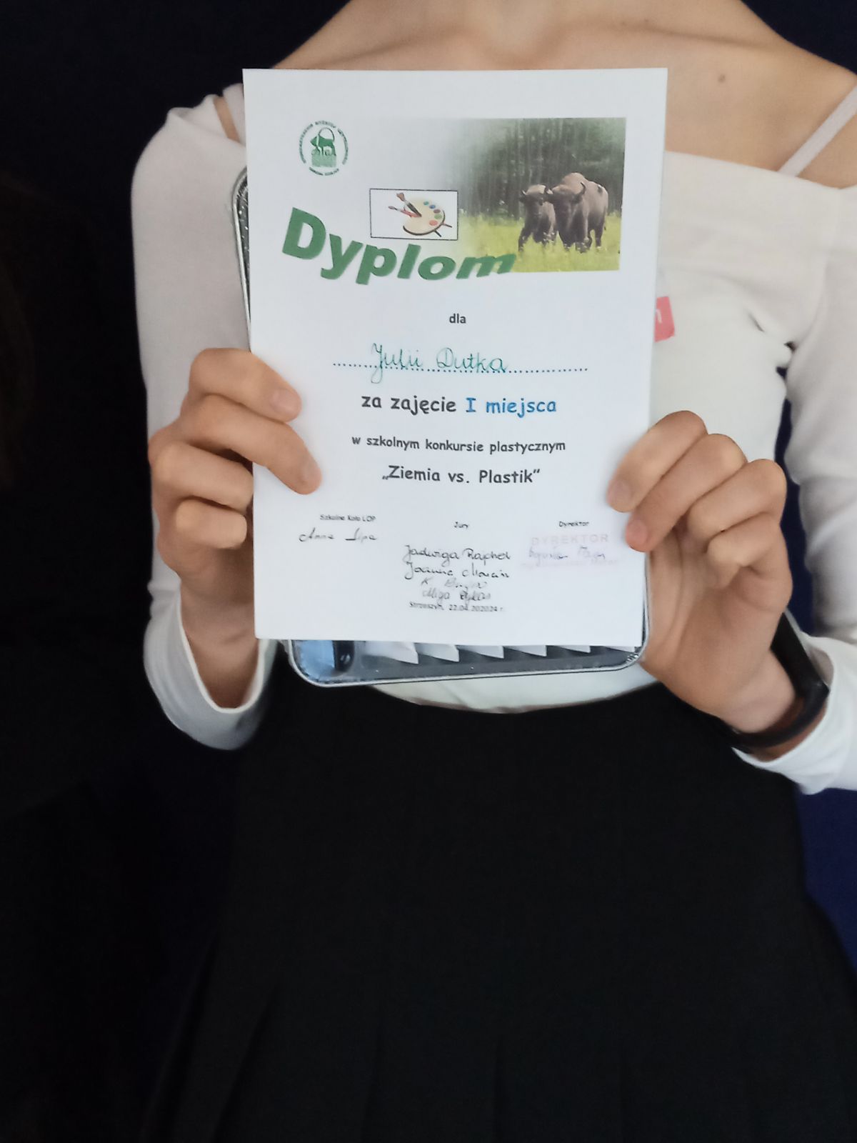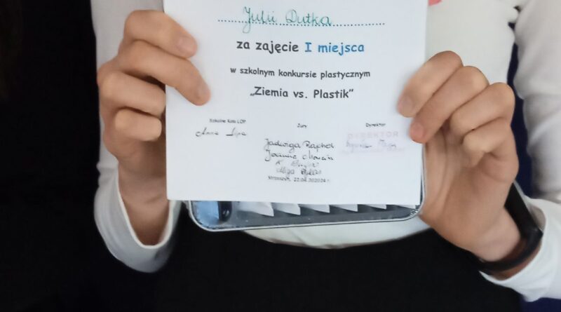Rozstrzygnięty został szkolny konkurs plastyczny „Ziemia vs. Plastik”: I miejsce – Julia Dutka, II miejsce – Marlena Gryga, III miejsce – Przemysław Bochenek oraz wyróżnienia – Klaudia Wszołek, Weronika Organiściak, Amelia Majcher? Jury w składzie, nauczyciele: Jadwiga Rajchel, Katarzyna Bugno, Alicja Dykas i Joanna Marcisz, bardzo wysoko oceniło poziom prac, zarówno pod względem artystycznym jak i edukacyjnym.