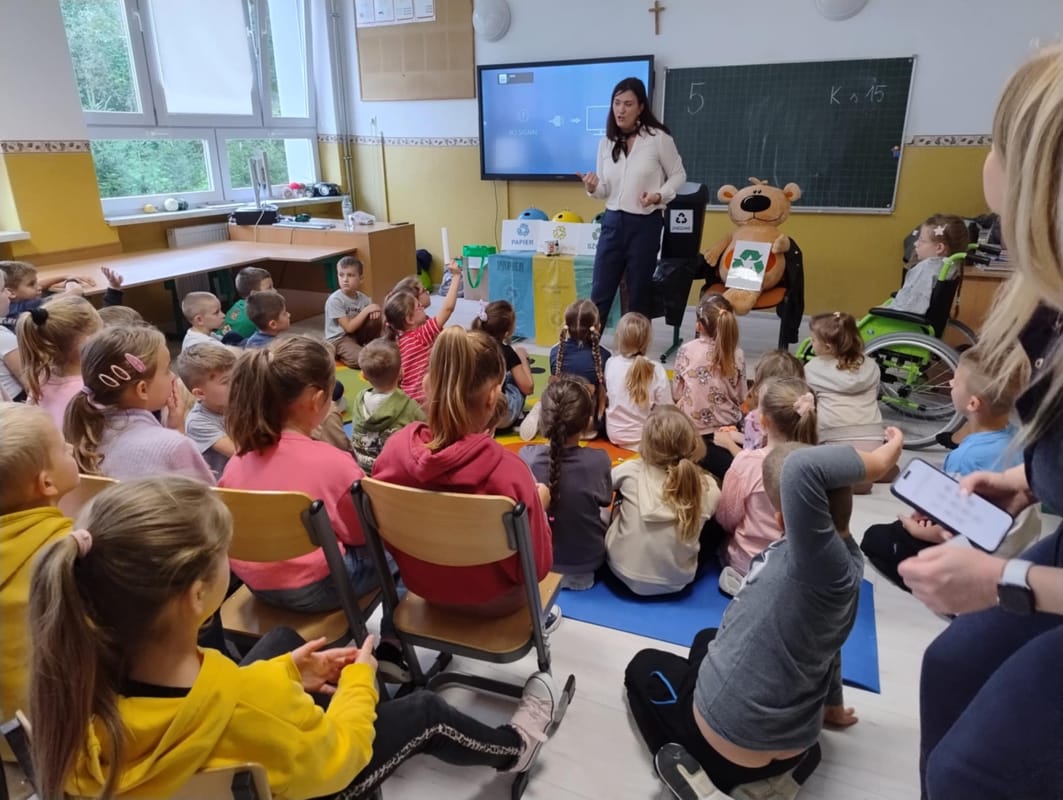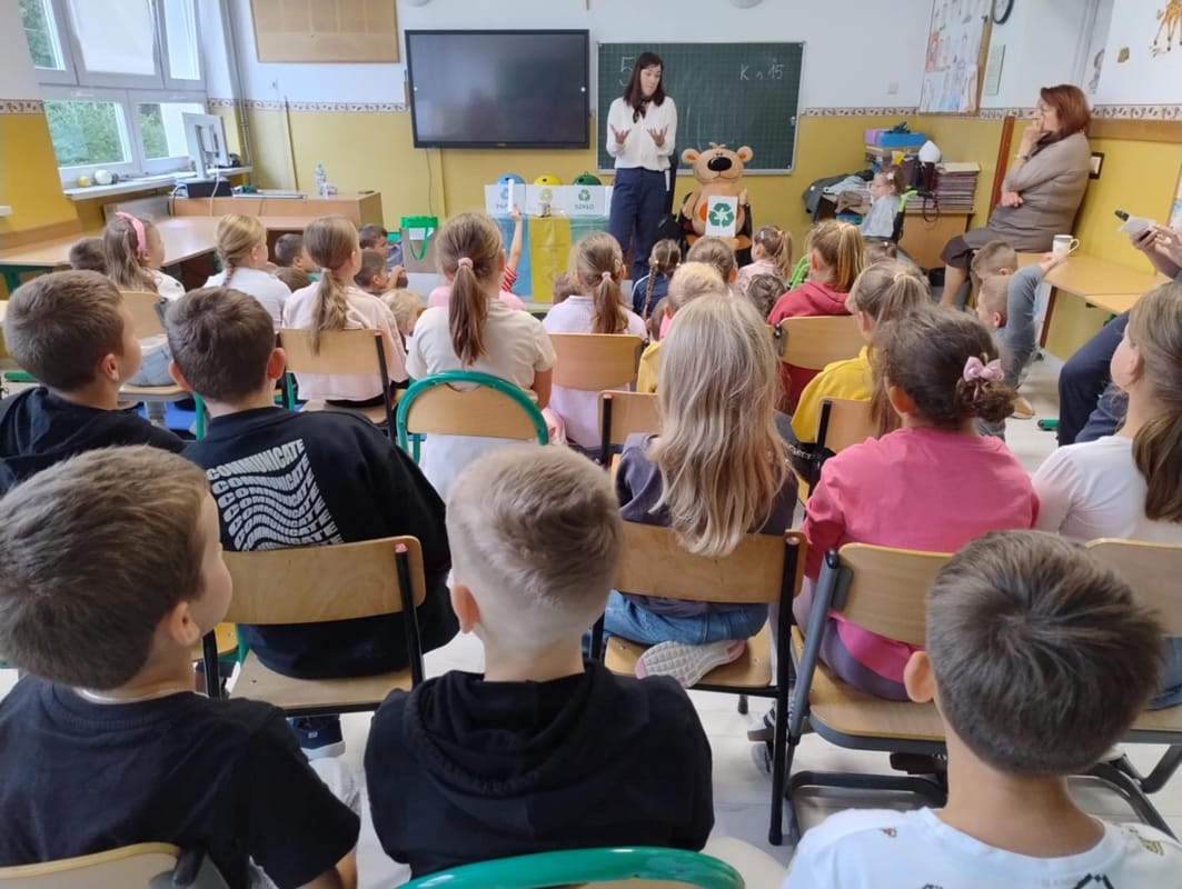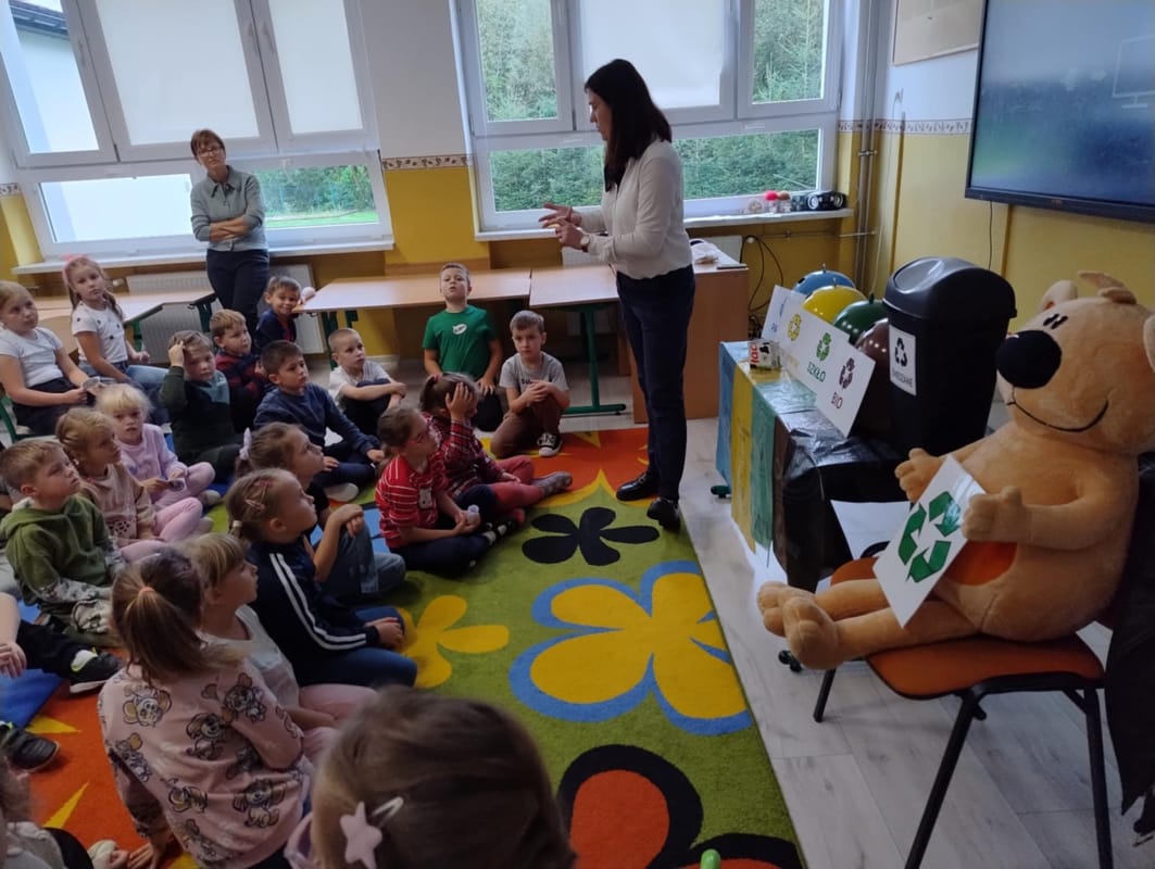29 września 2025 r. dzieci przedszkolne i uczniowie klas I – III z ZSP Wilczyska uczestniczyli w Ekolekcji – odzyskujemy naturę, którą przeprowadziły specjalistki z edukacji ekologicznej BOO Organizacja Odzysku Opakowań i Odpowiedzialności Producenta S.A z Tarnowa. Podczas zajęć dzieci zdobywały wiedzę na temat segregacji odpadów. Miłym akcentem była wizyta misia Recyklinka, który to tańczył z dziećmi. Na zakończenie zajęć przedszkolaki otrzymały naklejki, zakładki, puzzle, książeczkę oraz karty, a uczniowie zakładki i teczki na materiały.