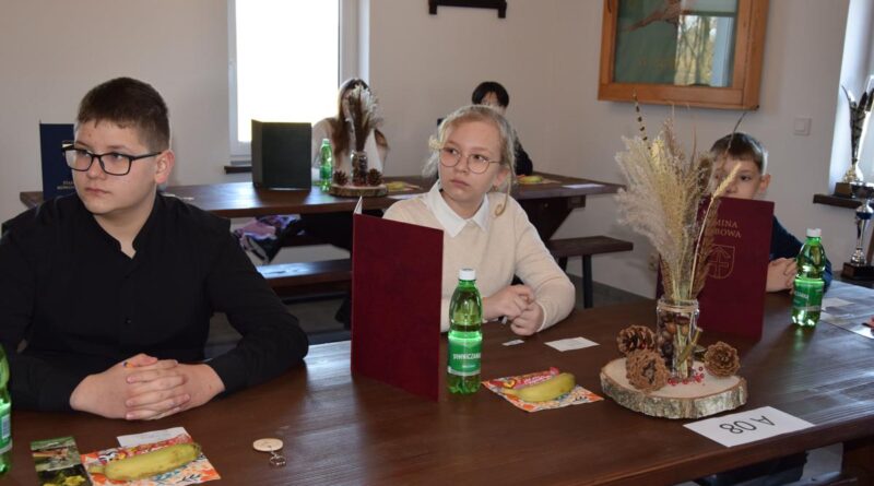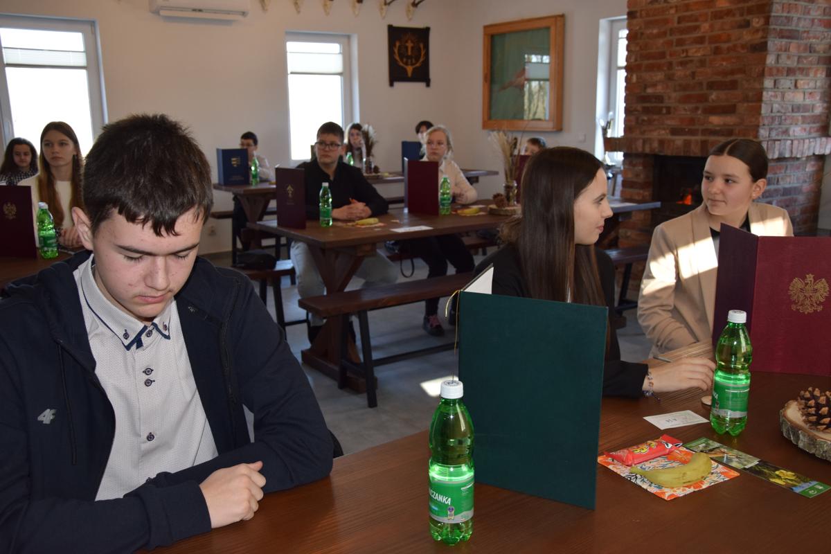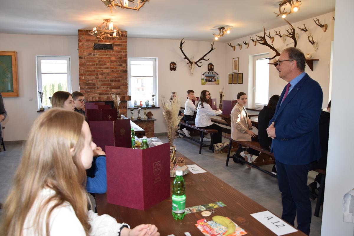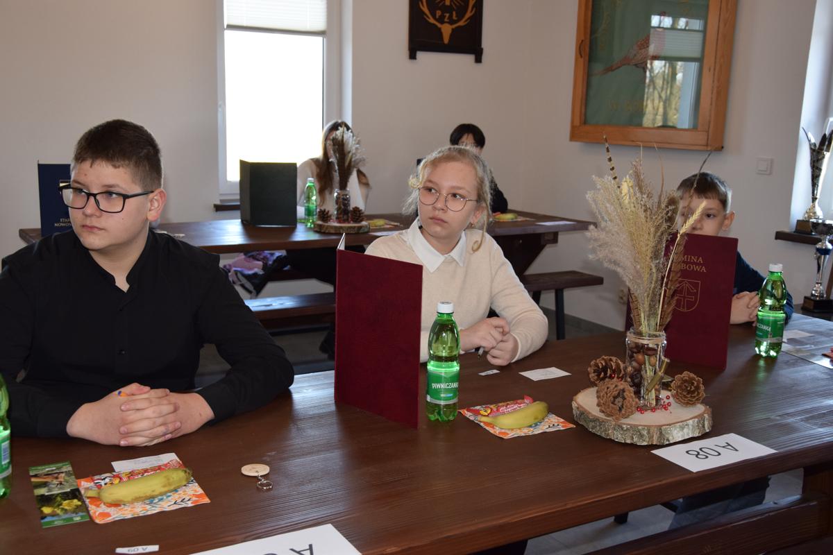 Wszystkich zebranych – uczniów i opiekunów powitał Dyrektor Szkoły Podstawowej w Stróżnej Pan Andrzej Płaziński. W konkursie wzięło udział 18 uczniów – po trzech z każdej szkoły podstawowej w Gminie Bobowa, wyłonionych na etapie szkolnym. Uczniowie rozwiązywali test przygotowany przez niezależną komisję konkursową. Po napisaniu testu wysłuchali prelekcji Prezesa Koła Łowieckiego „Bażant” Pana Zbigniewa Gryzło na temat pracy myśliwych i łowczych.