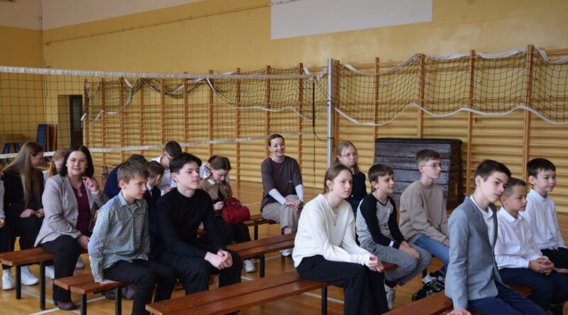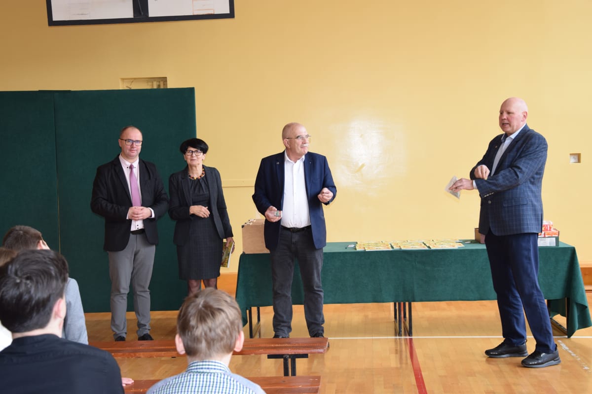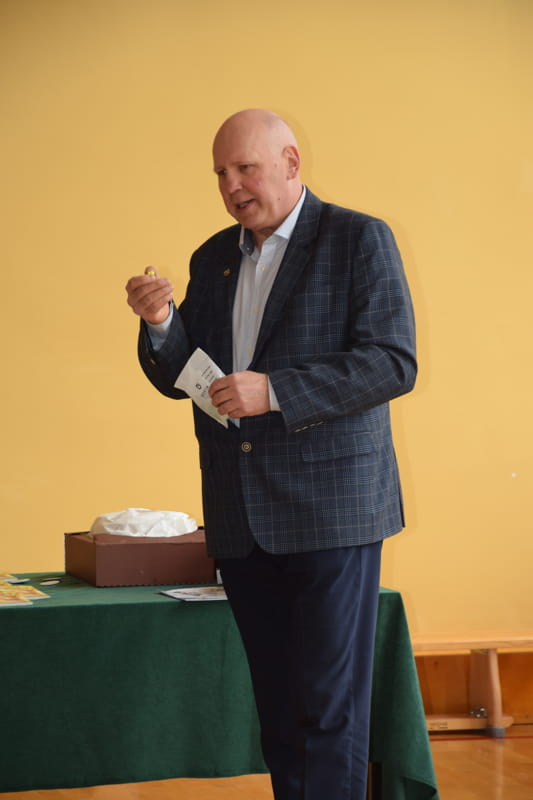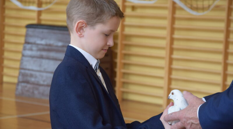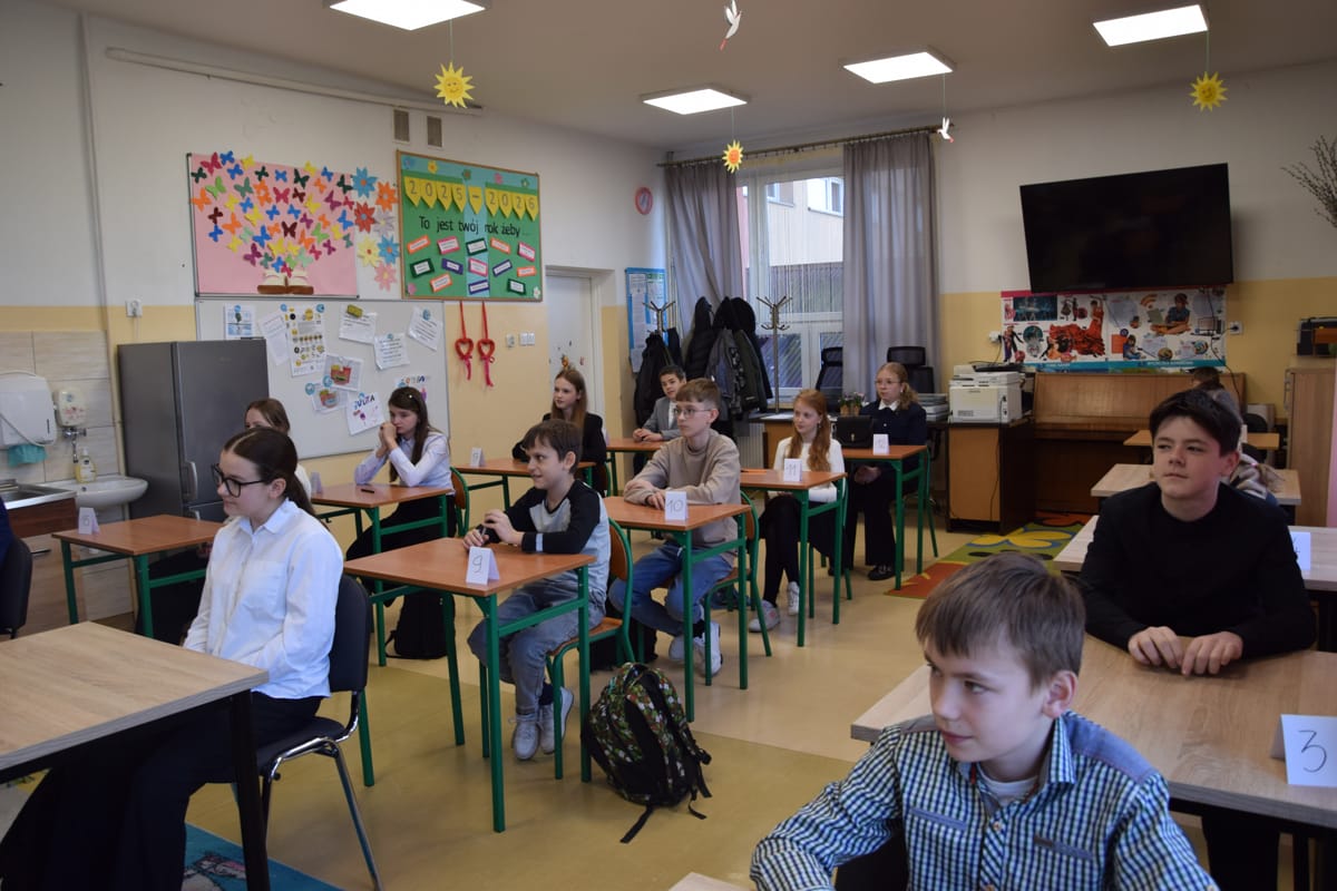 W czasie, gdy komisja konkursowa oceniała prace testowe, uczniowie wysłuchali prelekcji reprezentantów Polskiego Związku Hodowców Gołębi Pocztowych z Oddziału Beskid Sądecki na temat hodowli i lotów gołębi pocztowych.