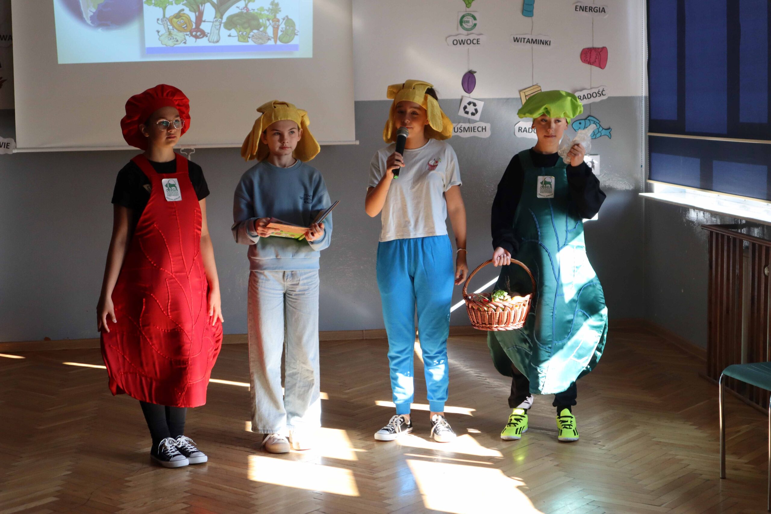 W pierwszej części spotkania były wiersze, piosenki oraz prelekcja pt. „Skąd się biorą produkty ekologiczne?” zaprezentowana przez „ekipę EKOSKOP” z Rzeszowa.