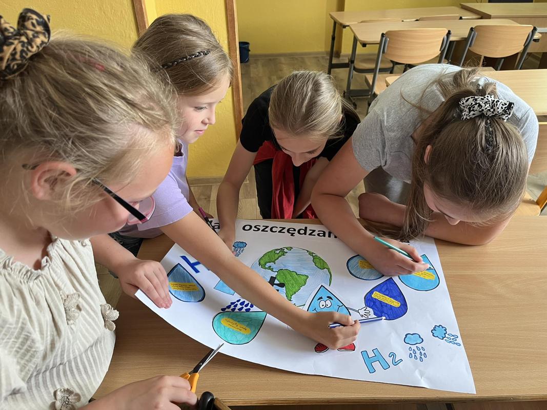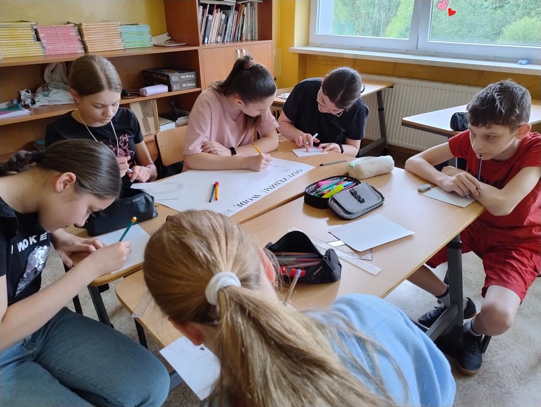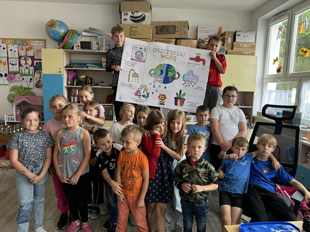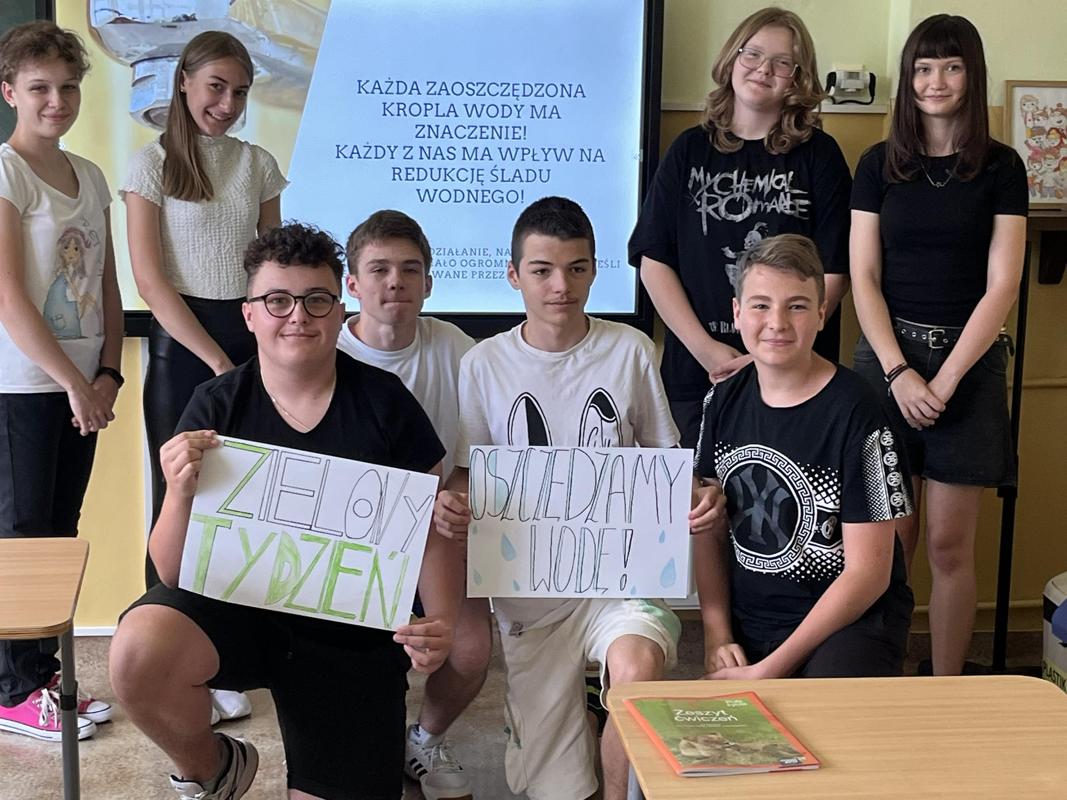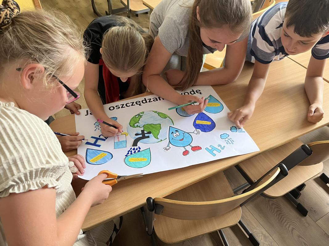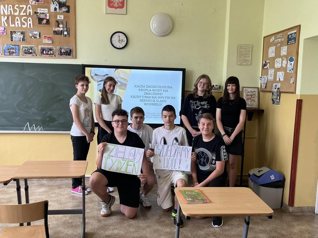 Od 3-6 czerwca 2024 r. uczniowie poszczególnych klas wykonywali plakaty ekologiczne ukazujące w jaki sposób można oszczędzać wodę. Podjęte działania poprzedzone były pogadankami i dyskusjami na temat konieczności ochrony środowiska a w szczególności oszczędzania wody. Zorganizowano także pokazy filmów edukacyjnych. Młodsi uczniowie wykonywali kolorowanki o tematyce wodnej oraz rozwiązywali krzyżówki i poznawali zasady oszczędzania wody. Zorganizowano także wyjścia w teren do tablic przyrodniczych ukazujących obieg wody w przyrodzie oraz małą retencję. Uczniowie klasy ósmej na lekcji biologii mierzyli ślad wodny.