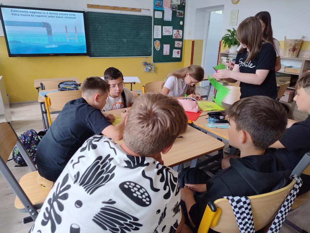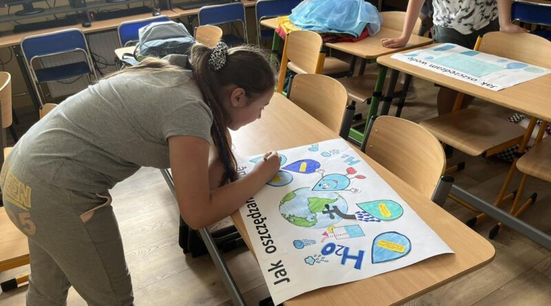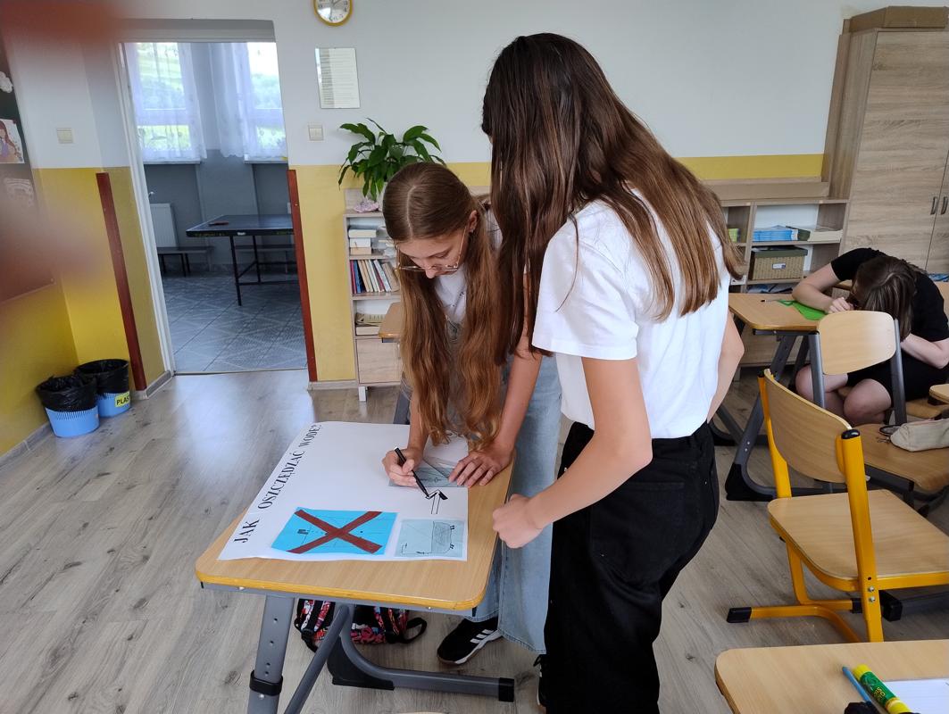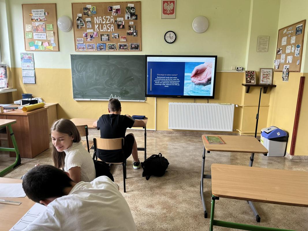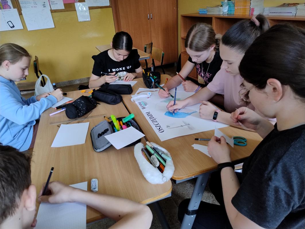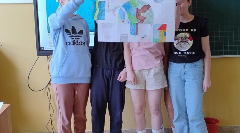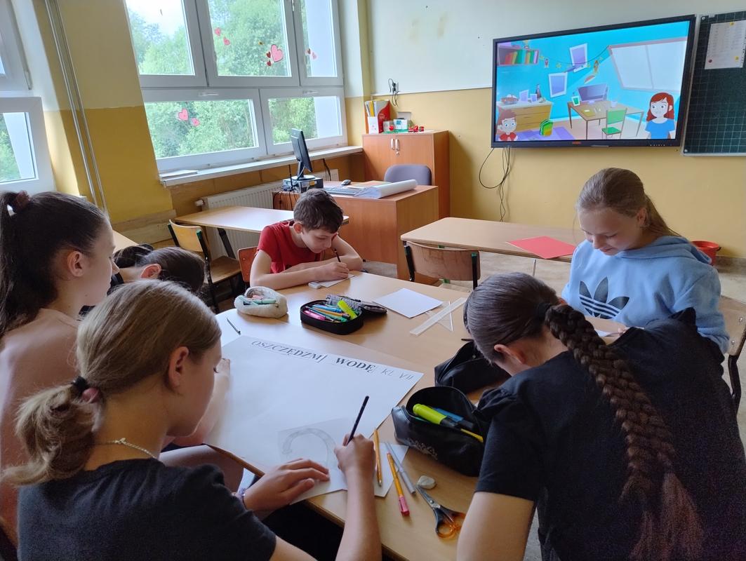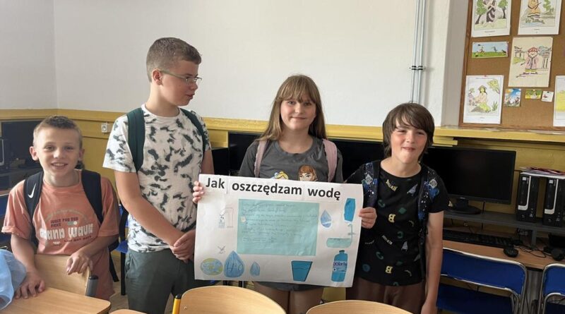 Od 3-6 czerwca 2024 r. uczniowie poszczególnych klas wykonywali plakaty ekologiczne ukazujące w jaki sposób można oszczędzać wodę. Podjęte działania poprzedzone były pogadankami i dyskusjami na temat konieczności ochrony środowiska a w szczególności oszczędzania wody. Zorganizowano także pokazy filmów edukacyjnych. Młodsi uczniowie wykonywali kolorowanki o tematyce wodnej oraz rozwiązywali krzyżówki i poznawali zasady oszczędzania wody. Zorganizowano także wyjścia w teren do tablic przyrodniczych ukazujących obieg wody w przyrodzie oraz małą retencję. Uczniowie klasy ósmej na lekcji biologii mierzyli ślad wodny.