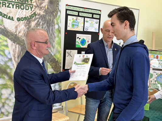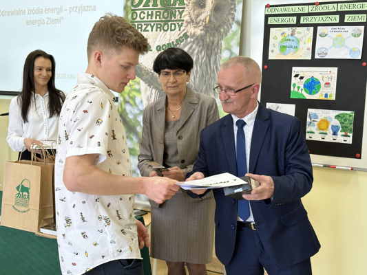Dla wszystkich  uczestników konkursu nagrody i dyplomy ufundowane zostały przez Starostę Gorlickiego. Nagrody wręczyli i gratulowali Wicestarosta – Pan Stanisław Kaszyk oraz Dyrektor Wydziału Ochrony Środowiska – Pan Marcin Janik.