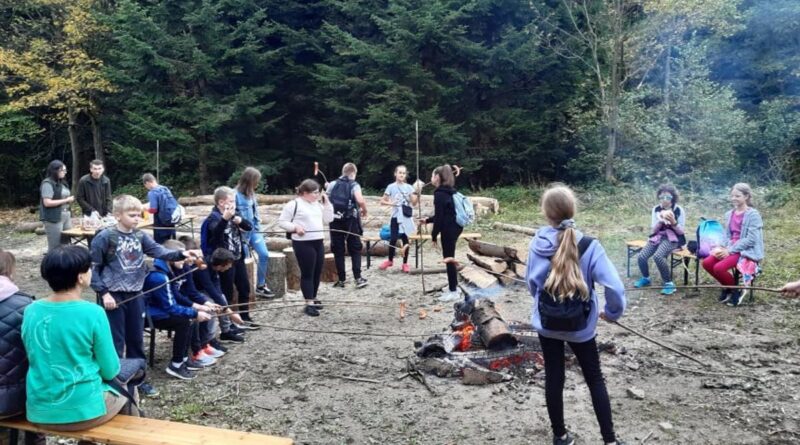 Uczniowie wraz z opiekunami uczestniczyli również w zajęciach terenowych, które odbyły się 27.09.2021 r. na terenie Nadleśnictwa Gorlice (w miejscowości Wołowiec). Podczas warsztatów uczniowie pogłębili swoją wiedzę na temat małej retencji, rozpoznawali gatunki roślin i zwierząt na danym obszarze oraz sporządzili dokumentację fotograficzną z pracy nad projektem.