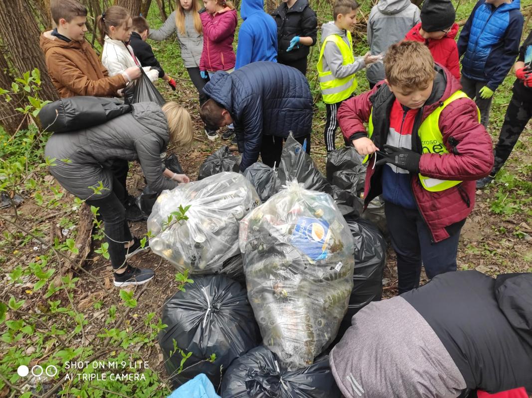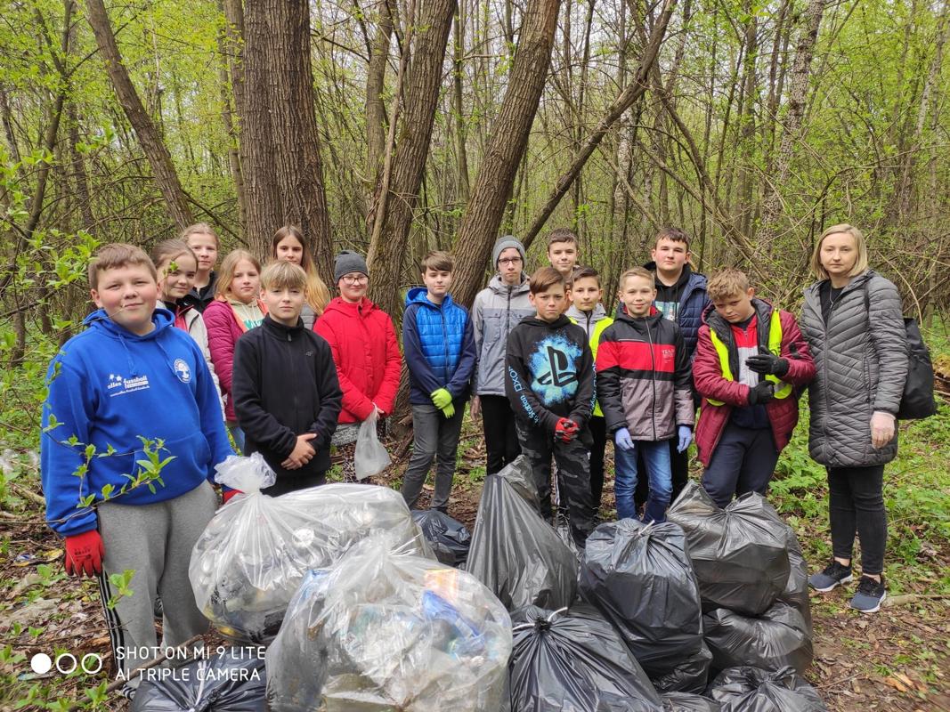 Zaangażowanie szóstoklasistów było ogromne, bardzo chętnie i sprawnie posprzątali wyznaczony teren. Wspólnie zebrali 50 worków śmieci.