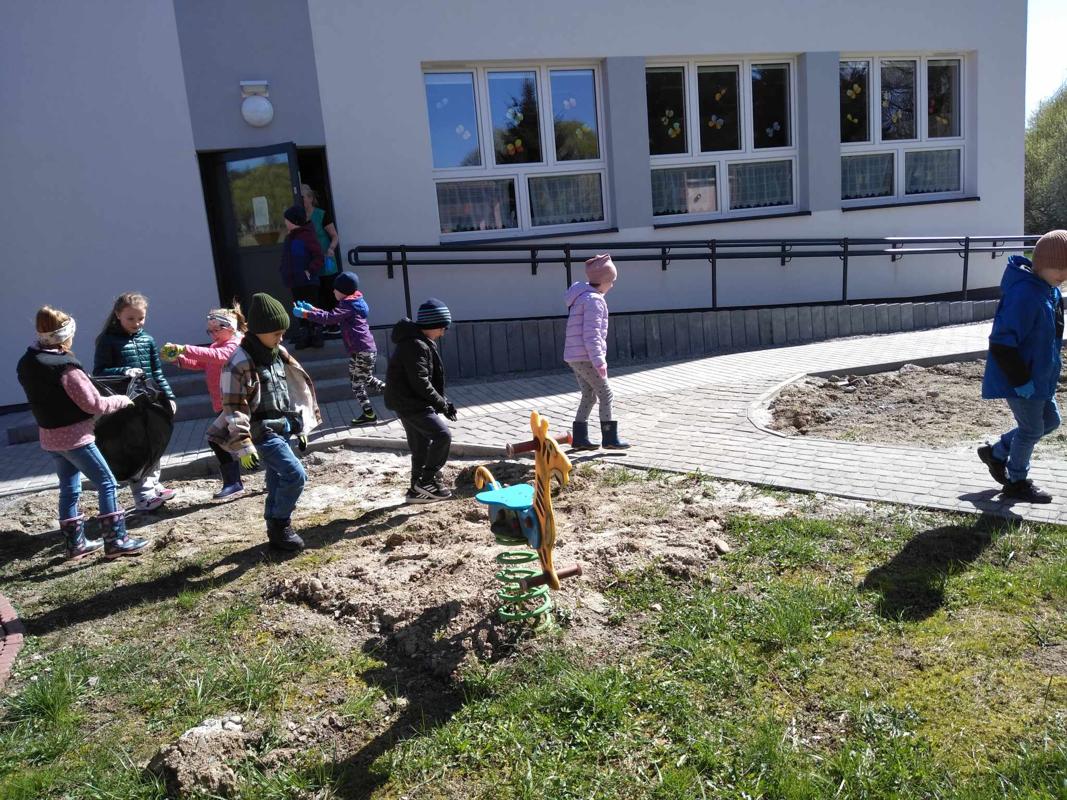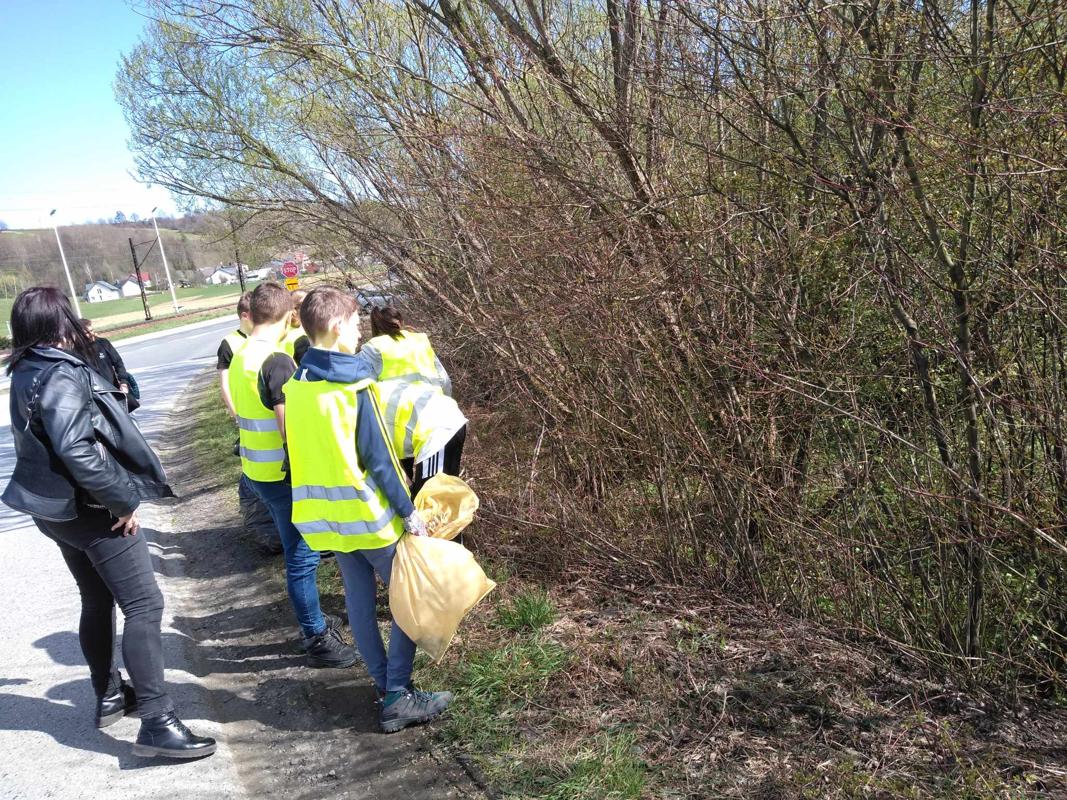 Dbałość o środowisko to obowiązek każdego człowieka. Ponieważ niektórzy o tym zapominają i zaśmiecają naszą piękną okolicę uczniowie szkoły pod opieką nauczycieli wyruszyli, by posprzątać otoczenie naszej miejscowości. Pogoda dopisała, więc prace przebiegały sprawnie. Niestety śmieci nie brakowało.
