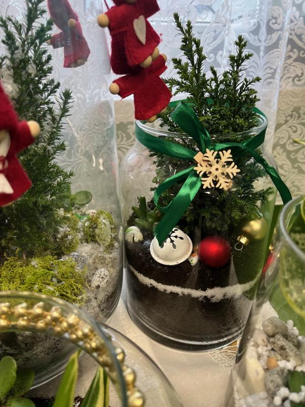 Zamknięte lasy w słoikach nie tylko cieszą oko swoim urokiem, ale także wypełniają przestrzeń zapachem natury, który przywołuje atmosferę Bożego Narodzenia. To wyjątkowy sposób, by wprowadzić świąteczny nastrój do szkoły i domu.