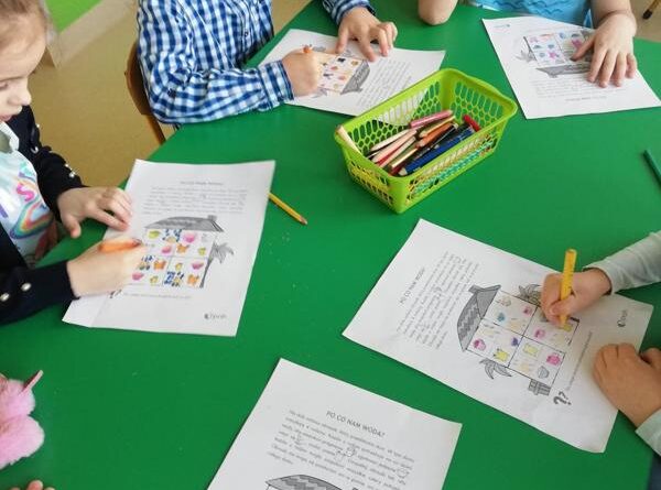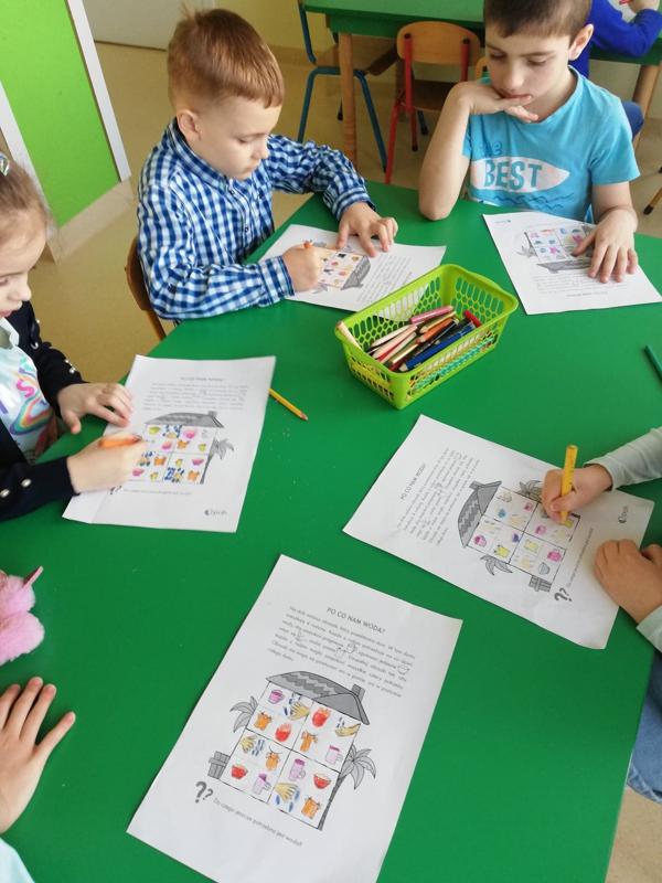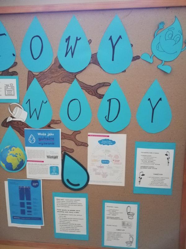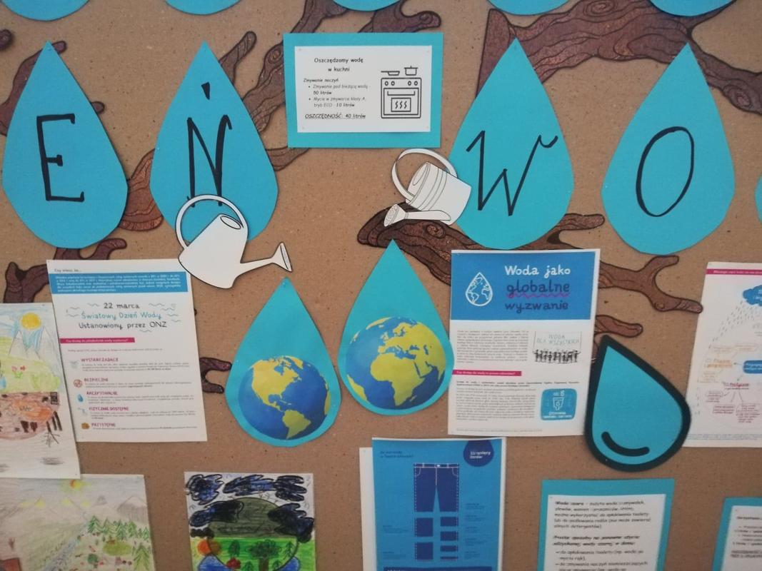 Dodatkowo w oddziale przedszkolnym i klasach I – III przeprowadzono lekcje tematyczne. Uczniowie oglądali ciekawe prezentacje oraz tworzyli prace plastyczne dotyczące wody.