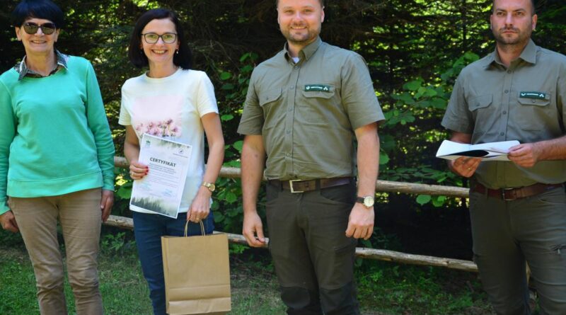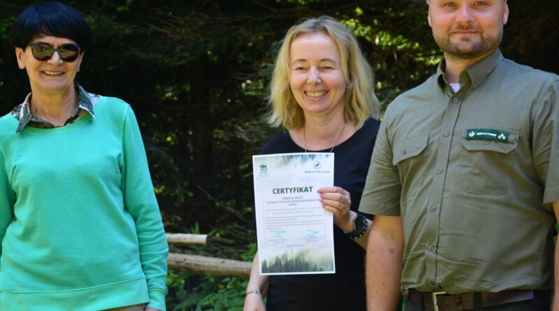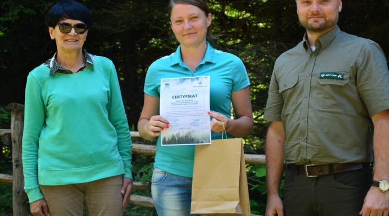 Warsztaty zakończyły się uroczystym wręczeniem certyfikatów potwierdzających zapoznanie się z tematyką różnorodności przyrodniczej Beskidu Niskiego oraz pogłębienie wiedzy z zakresu znaczenia ekosystemu leśnego dla ochrony klimatu.