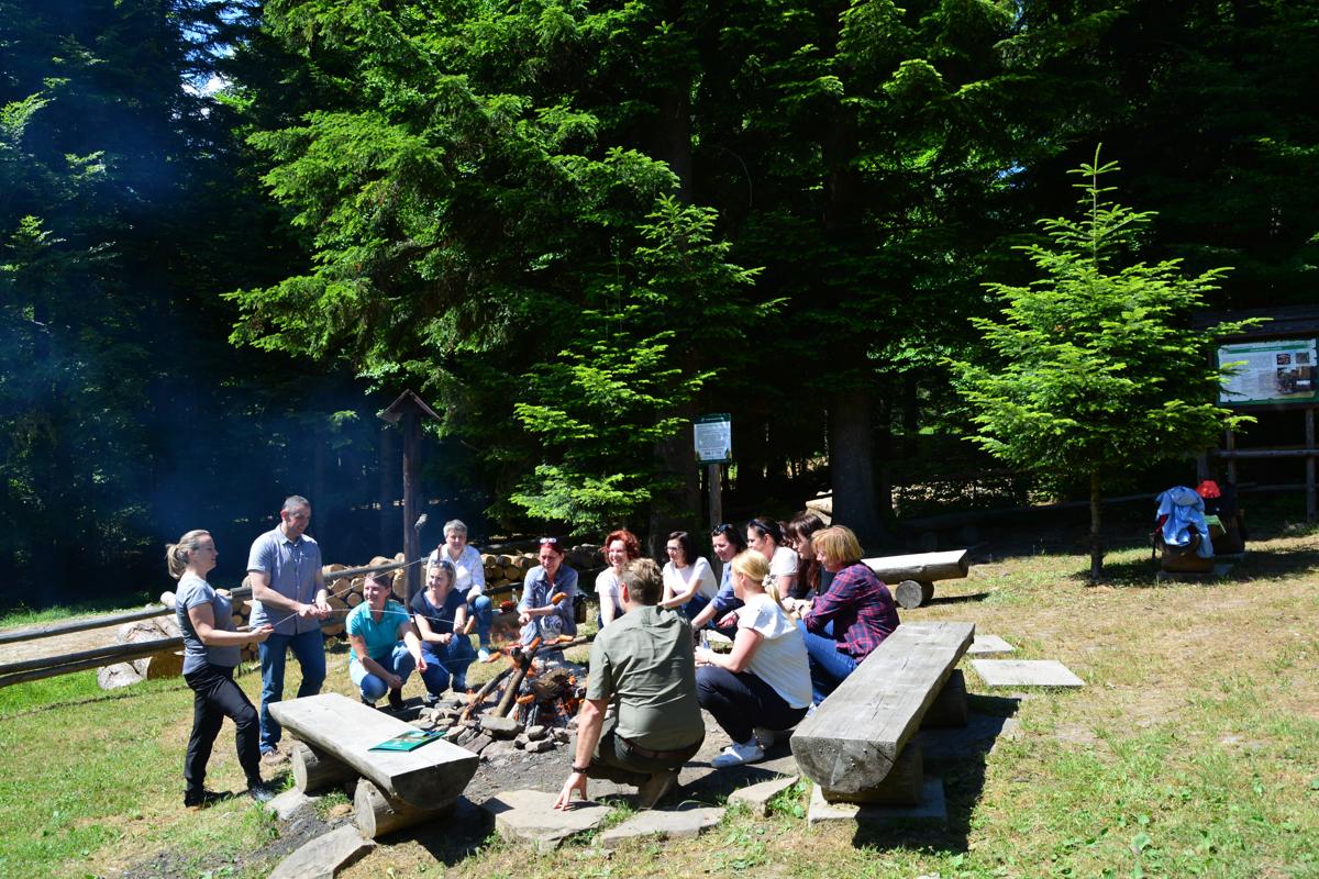 Zajęcia w terenie były okazją do pogłębienia wiedzy o lesie, wymiany informacji o roli lasów w ochronie klimatu oraz wartości drewna jako surowca doskonałego. Kadra nauczycieli biologów i przyrodników biorąca udział w szkoleniu terenowym poszerzyła wiedzę o pracy leśników, jak również miała okazję do zanurzenia się w kąpiel leśną zgodnie z japońską sztuką shinrin-yoku.