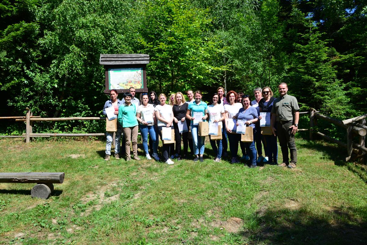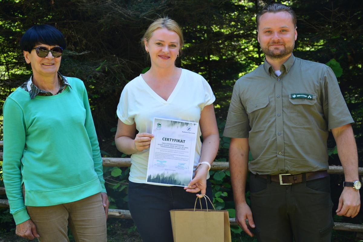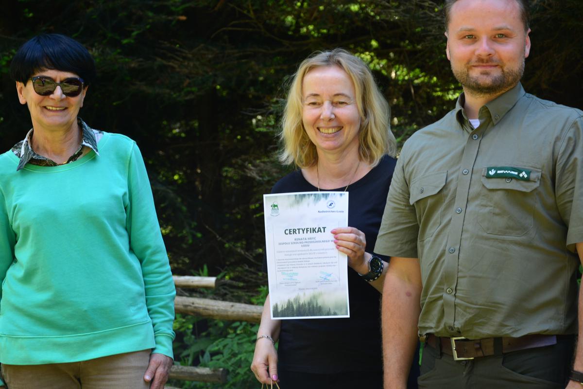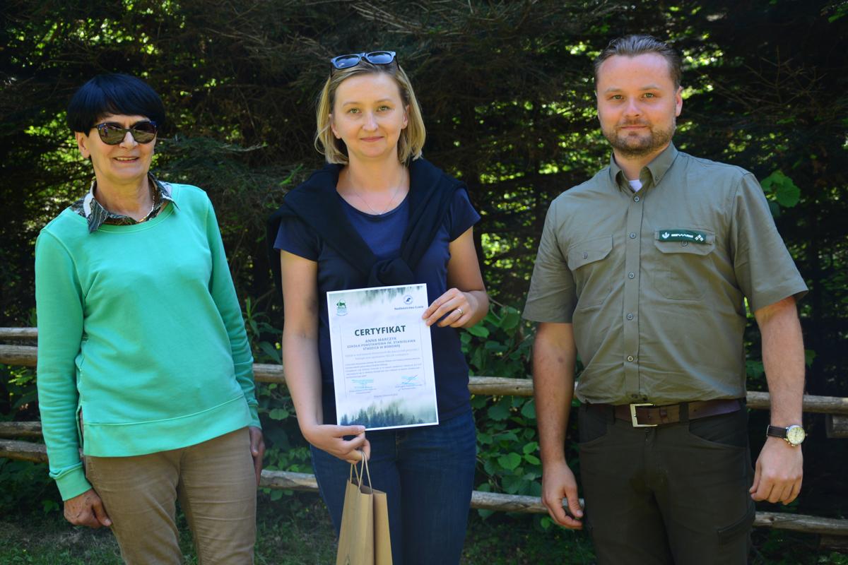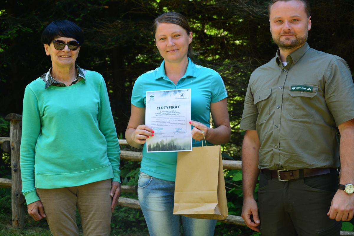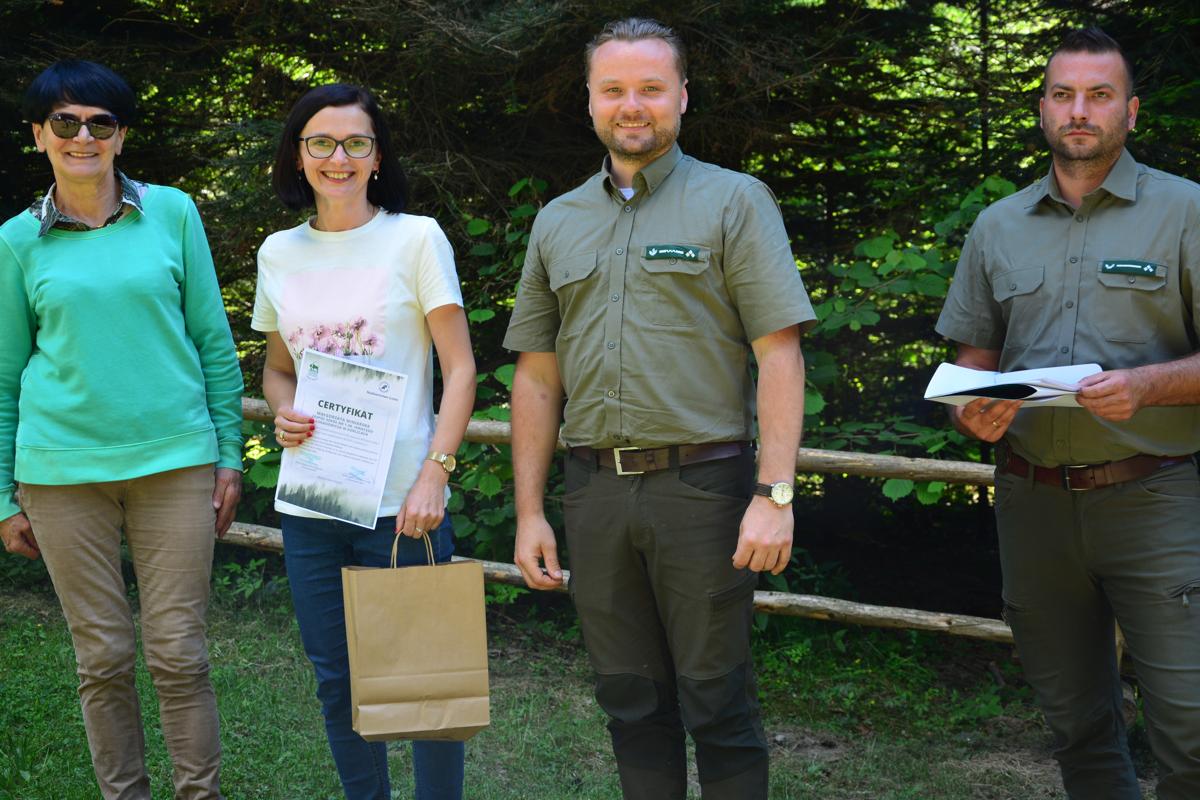 Warsztaty zakończyły się uroczystym wręczeniem certyfikatów potwierdzających zapoznanie się z tematyką różnorodności przyrodniczej Beskidu Niskiego oraz pogłębienie wiedzy z zakresu znaczenia ekosystemu leśnego dla ochrony klimatu.