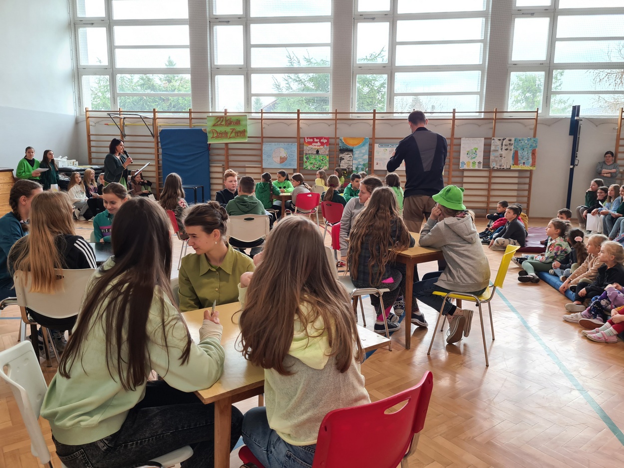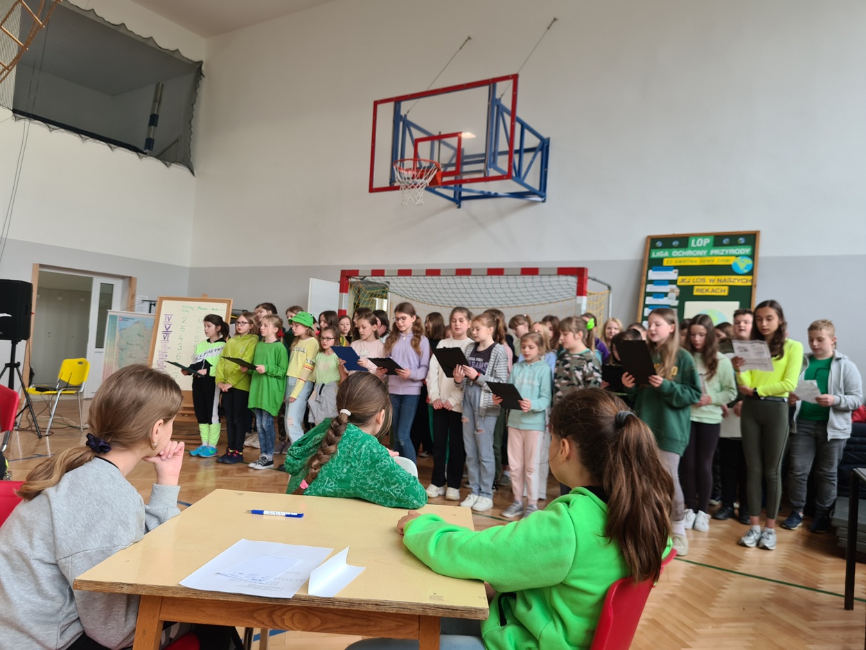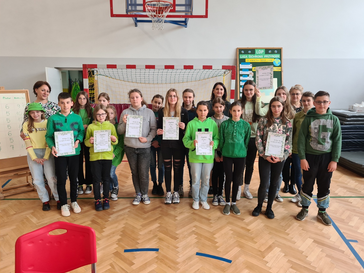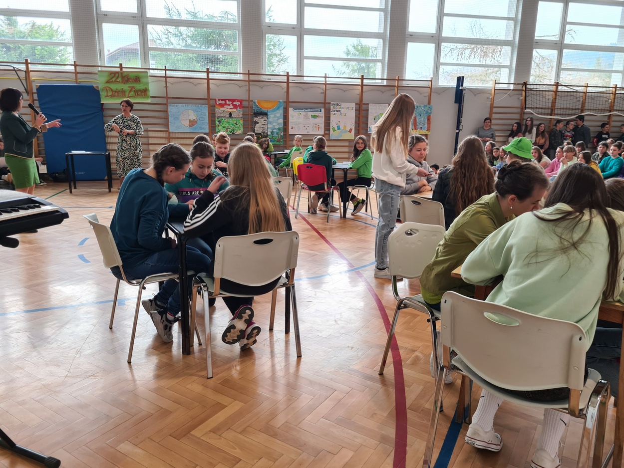 Wszystkie klasy przygotowały również plakaty promujące zachowania proekologiczne, które zdobią szkolny korytarz i przypominają o właściwym stosunku człowieka do przyrody. Większość uczniów w tym dniu ubrała się symbolicznie na kolor zielony.