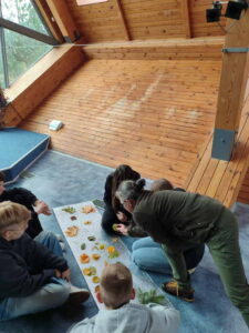 Chociaż tego dnia pogoda nas nie rozpieściła, nie zrezygnowaliśmy z zajęć terenowych i odbyły się one na krótszym dystansie. Pracownik MPN przeprowadził zajęcia botaniczne. Edukator MPN przedstawił różnorodność drzew, krzewów i roślin zielnych, pokazując w jaki sposób należy je rozpoznawać. Była to nauka połączona z zabawą edukacyjną. Ostatnim elementem programu przygotowanego dla uczestników były zadania i konkurencje drużynowe związane z rozpoznawaniem drzew, krzewów i roślin zielnych. W rywalizacji grupowej wszystkie zespoły osiągnęły podobne, wysokie wyniki, przy tym świetnie się bawiąc i integrując się ze sobą. Uczestniczy otrzymali materiały edukacyjne.