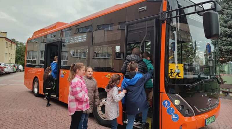 Dodatkową atrakcją dla uczestników warsztatów był przejazd ze swojej szkoły do PSZOK-u ekologicznym środkiem lokomocji czyli gminnym autobusem elektrycznym.