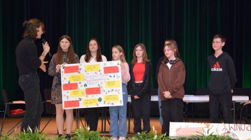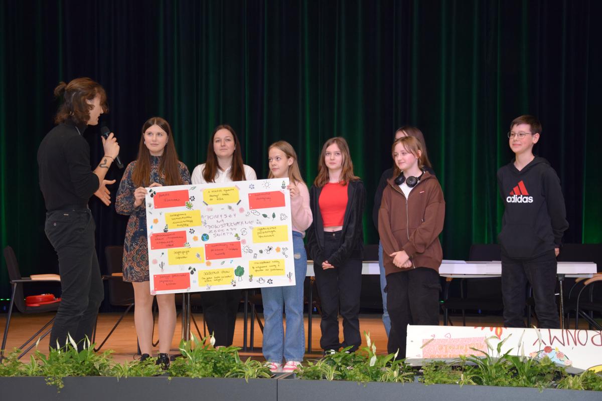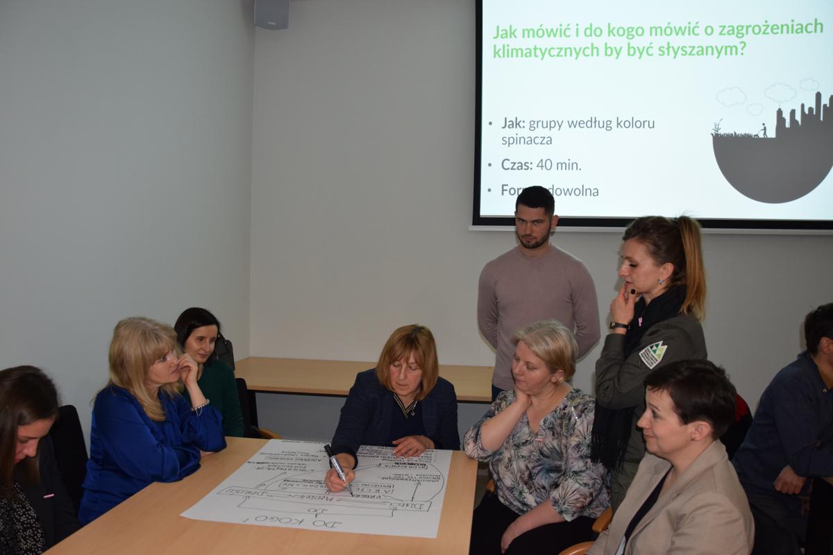 Zarówno uczniowie jak i nauczyciele na zajęciach warsztatowych pracowali w grupach. Wszyscy zastanawiali, jak powstrzymać zmiany klimatyczne i jaką rolę w tym zakresie pełni pojedynczy człowiek, społeczność lokalna oraz globalna.