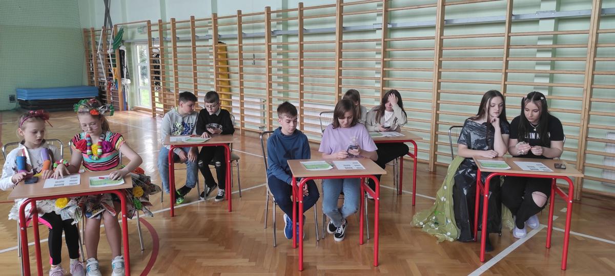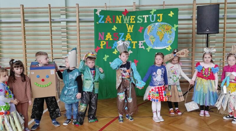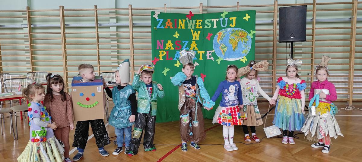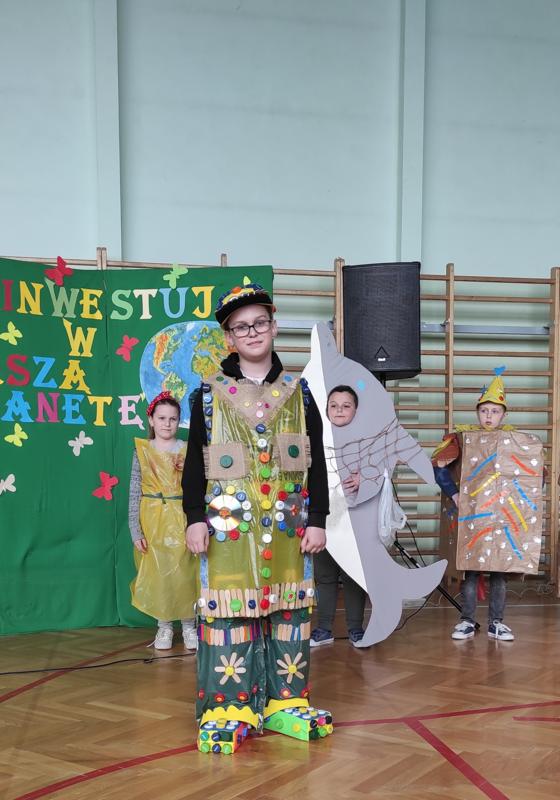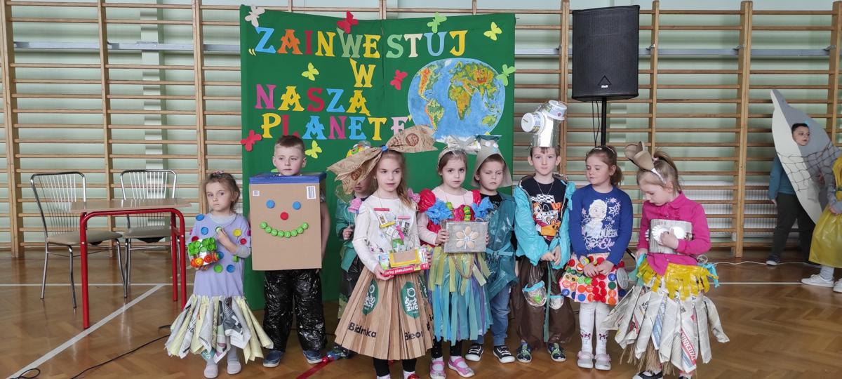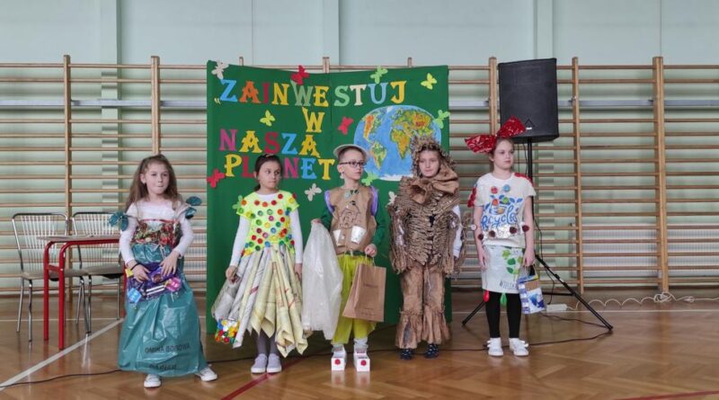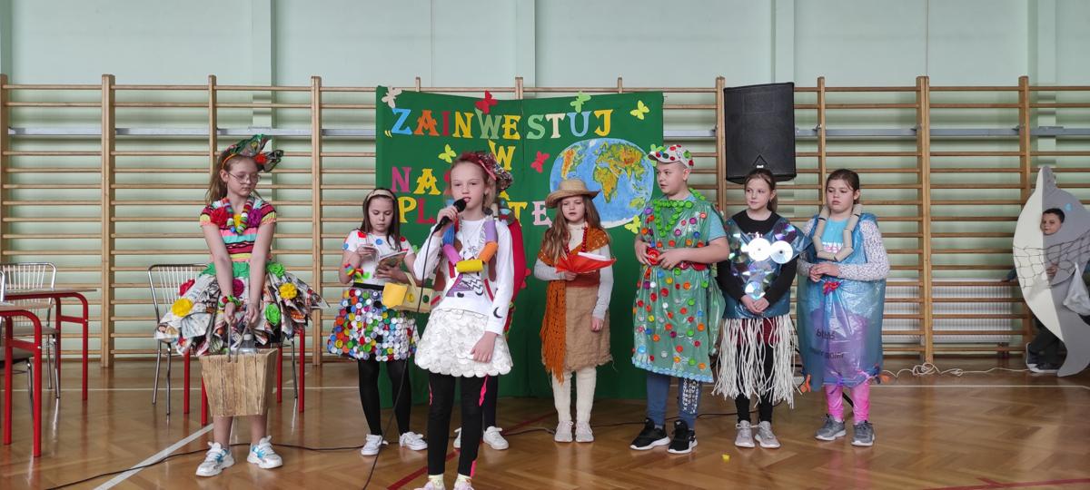 Na początku wysłuchaliśmy informacji na temat historii obchodów Dnia Ziemi. Następnie klasa trzecia przedstawiła inscenizację o tematyce ekologicznej. Kolejnym punktem programu była prezentacja strojów konkursowych. Różnorodność, pomysłowość i kreatywność młodych twórców eko-mody była ogromna. Jury miało trudny orzech do zgryzienia. Przeprowadziliśmy konkurs wiedzy dla przedstawicieli klas 4 – 8. Polegał on na wykonaniu przygotowanych zadań przez przedstawicieli każdej klasy. Zadania stworzone zostały w oparciu o wiedzę podawaną podczas trwającego apelu. Aby wykonać zadania należało wykazać się uwagą i wiedzą. Dodatkową atrakcją było zakodowanie pytań przy użyciu kodów QR. Po rywalizacji nastąpiło ogłoszenie wyników konkursu klasowego i konkursu „EKO – KREACJA”. Pamiętajmy o tym, aby inwestować w naszą planetę.
