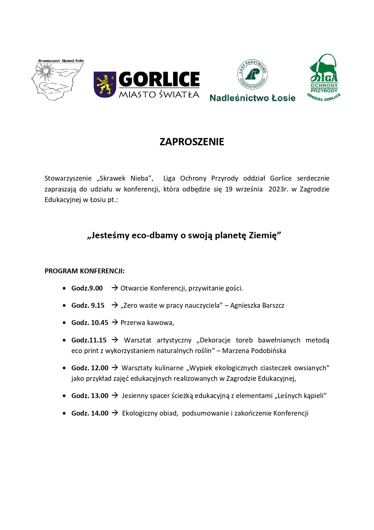Aktualności Zaproszenie na konferencję „Jesteśmy eco-dbamy o swoją planetę Ziemię” 13 września 2023 LOP